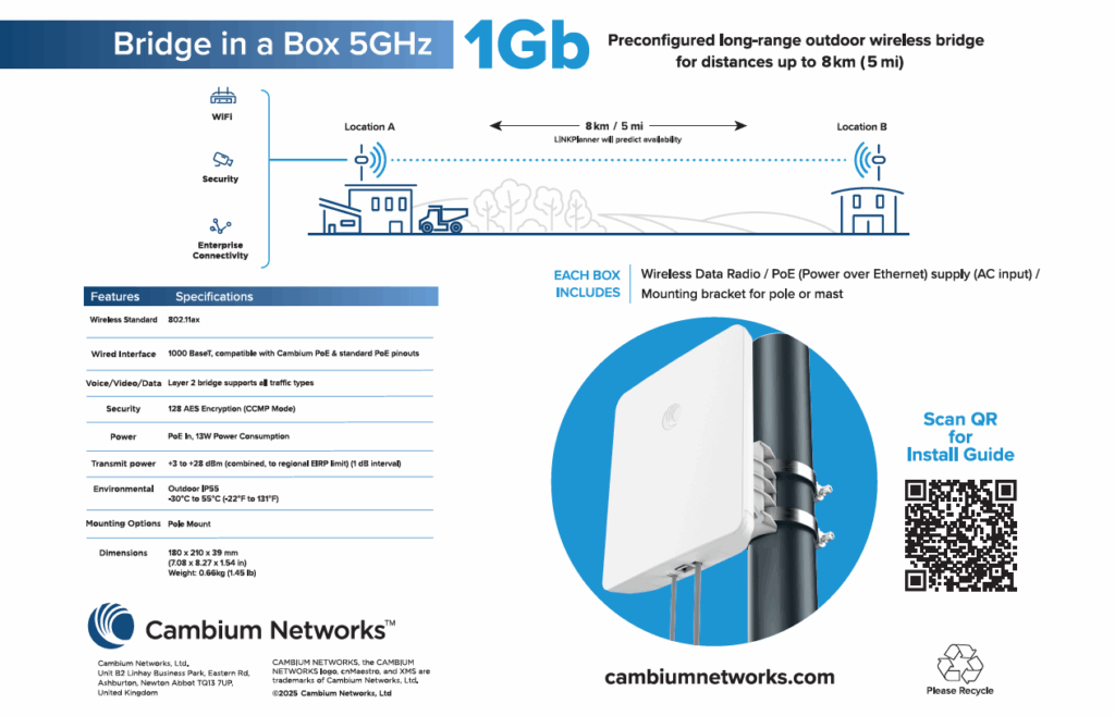 Bridge-in-a-Box 5 GHz Specifications Overview